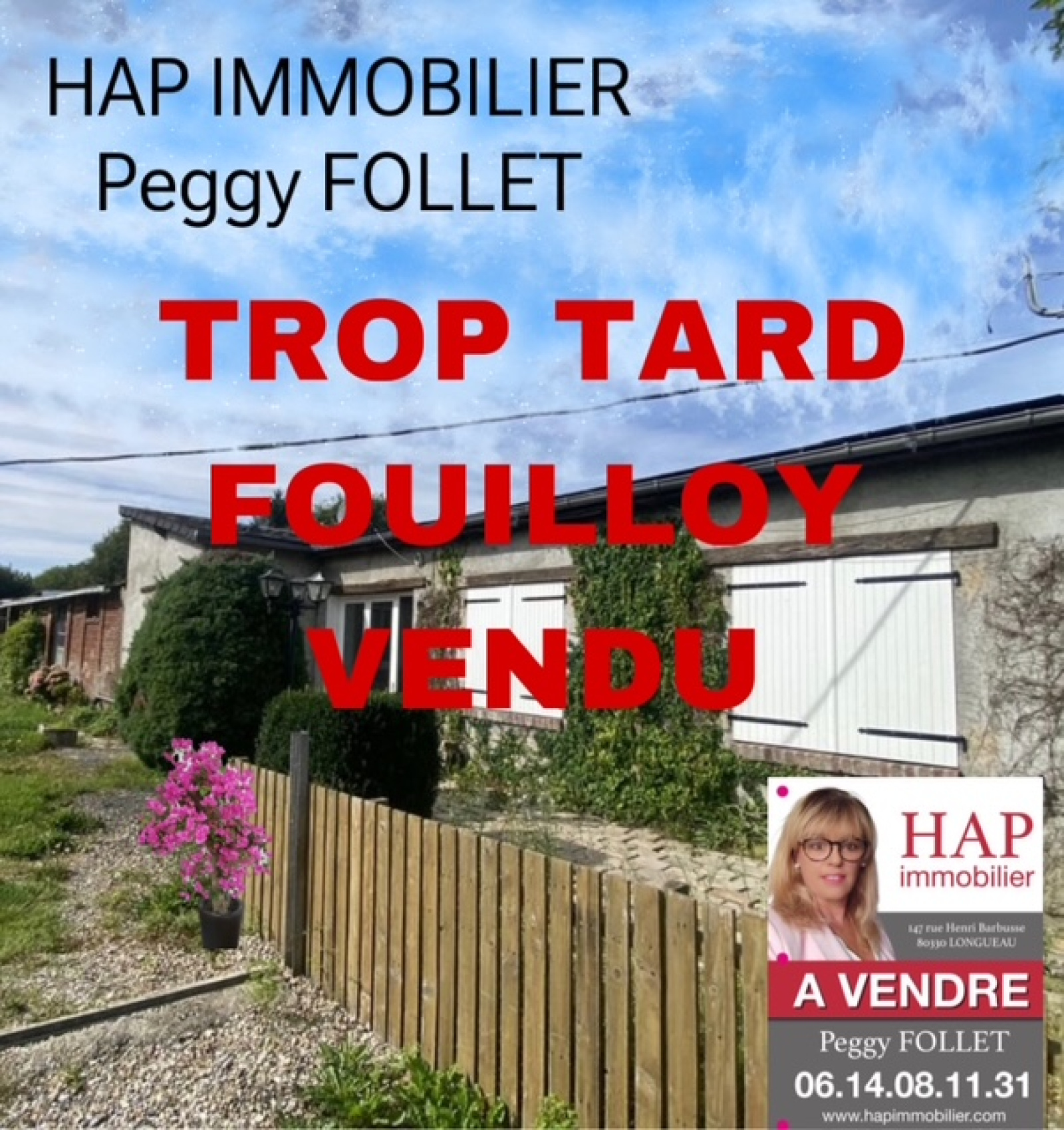 Contactez Peggy FOLLET de l'agence immobilière HAP IMMOBILIER Agent commercial en immobilier (RSAC: 918007568)
