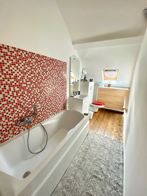 Etage: 1 grande chambre et salle de bain.