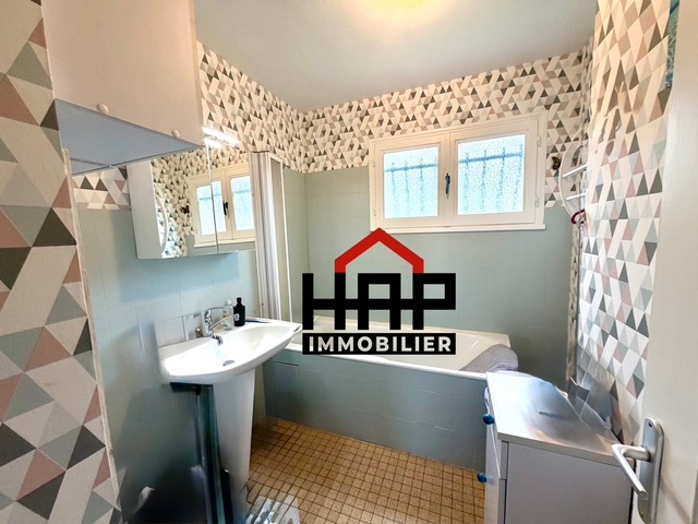 Pavillon individuel de 1975 sur sous sol complet en retrait de rue avec jardin et 4 chambres (capacité 5) dont 2 au RDC, d'une surface habitable d'environ 95m2 sur un terrain cadastré de 400m2