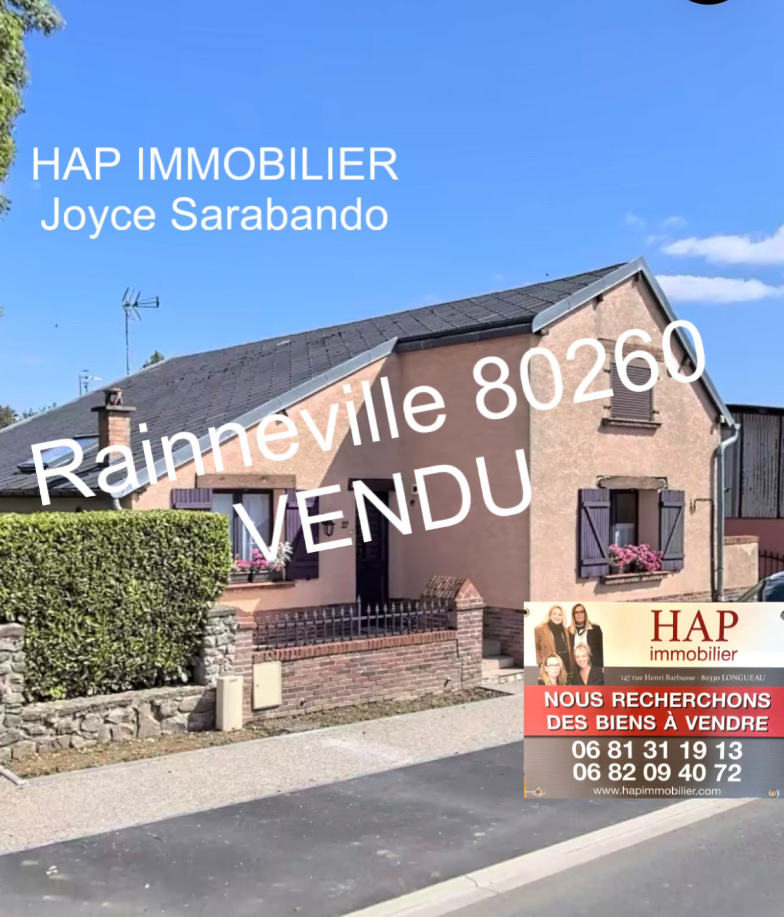 Joyce SARABANDO vous présente à Rainneville 80260 proximité Amiens toutes commodités.